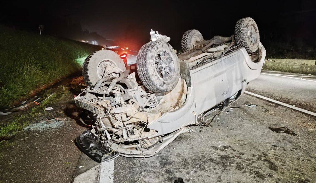 Um pai, de aproximadamente 30 anos, e o filho, de dois, morreram após um capotamento na noite desta segunda-feira (22), na BR-116, em Campina Grande do Sul, na Região Metropolitana de Curitiba (RMC).
