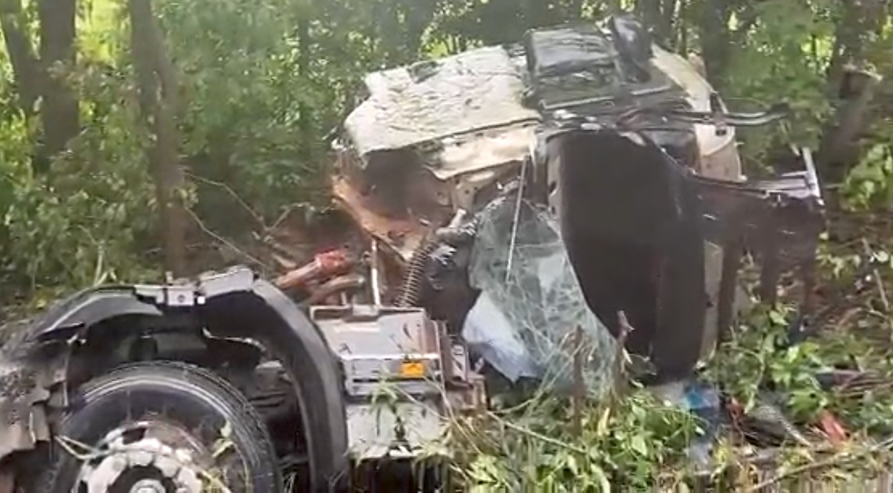 Segundo informações, o caminhão saiu da pista e colidiu em árvores na margem da rodovia, deixando a cabine completamente destruída.