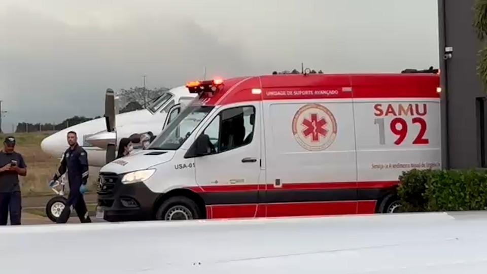 A paciente saiu na ambulância do Samu do Hospital Universitário do Oeste do Paraná às 15h24, rumo ao Aeroporto Regional de Cascavel, para embarcar no avião.
