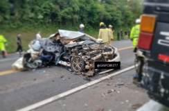Acidente entre carro e ônibus deixou duas vítimas fatais e um ferido grave na tarde deste domingo em Palmeira (PR)