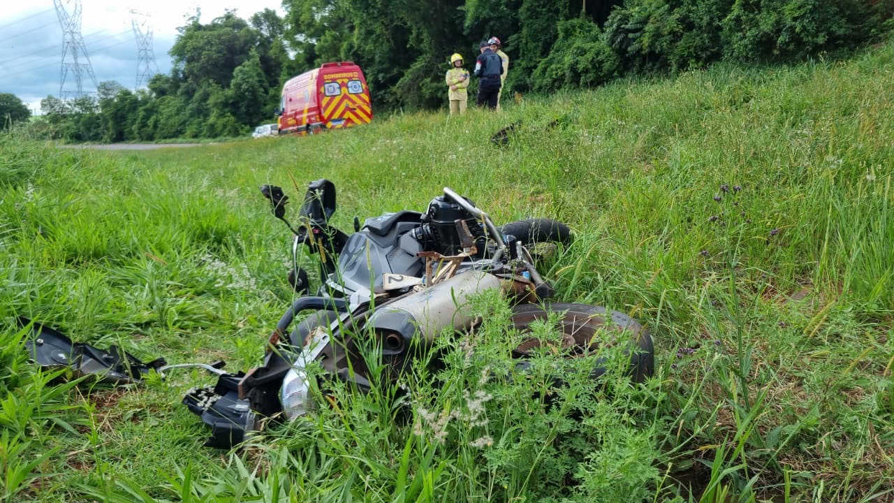 O condutor perdeu o controle da motocicleta, uma BMW GS, e saiu da pista, vindo a cair sobre a área de grama às margens da rodovia. Em decorrência do acidente, o motociclista sofreu fratura fechada de fêmur e fratura fechada de tornozelo.