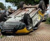 Foi o capotamento de um Renault/Kangoo, placas de Marechal Cândido Rondon/PR, conduzido por uma mulher de 35 anos..