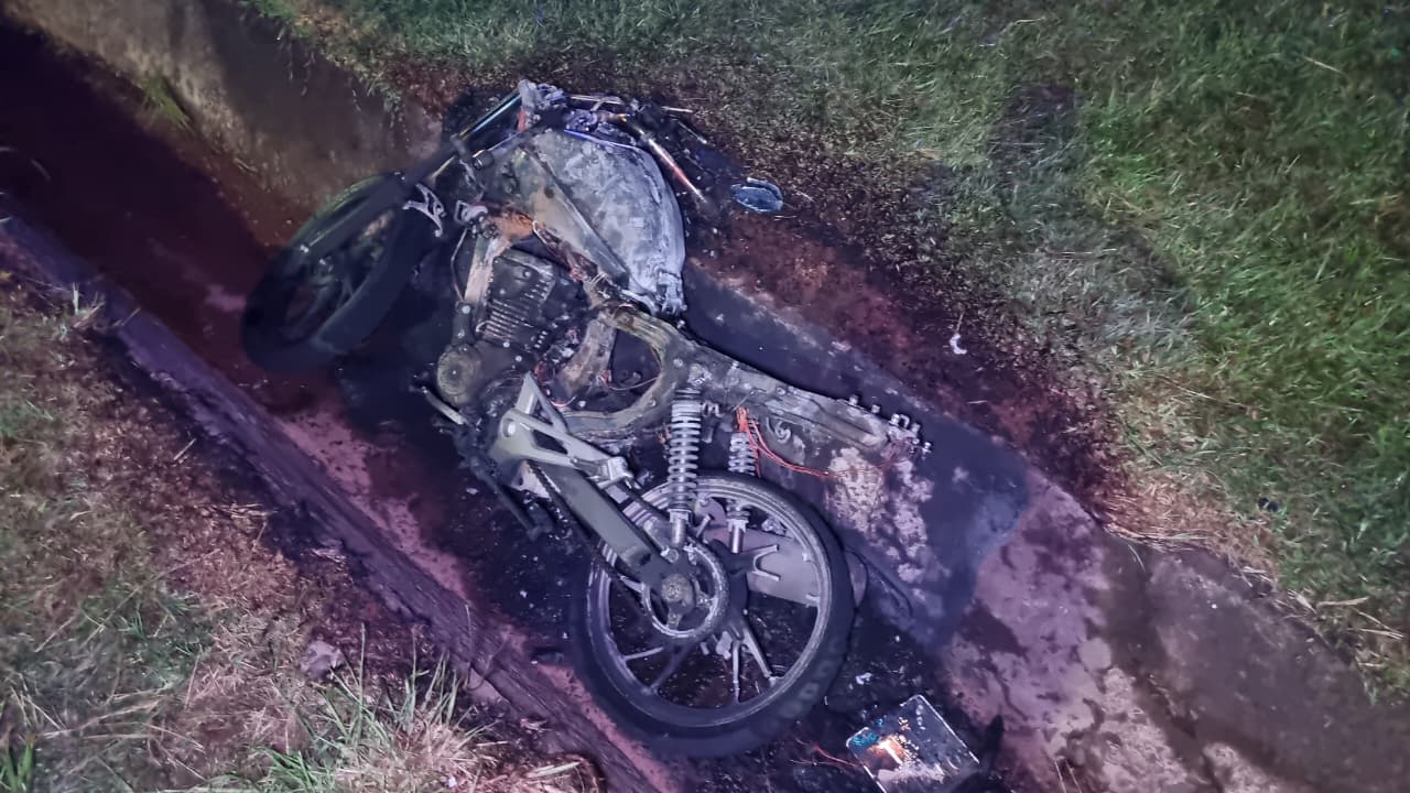 Na noite desta segunda-feira (29) uma motocicleta Honda CG 160 foi consumida por um incêndio às margens da BR-277, na região do Bairro Parque São Paulo, em Cascavel.