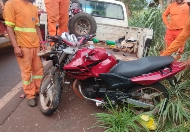 O sinistro do tipo colisão traseira aconteceu quando a motocicleta, que seguia no sentido Pato Bragado a Marechal, atingiu uma caminhonete GM D20 branca que estava estacionada fora da pista de rolamento.