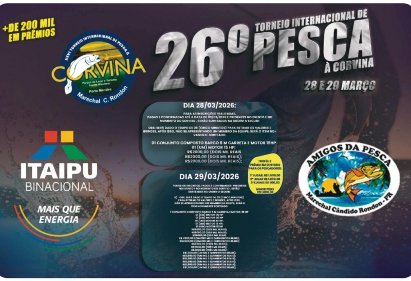 Ainda temos vagas! Convidamos especialmente os pescadores do Paraguai para participarem de um dos maiores torneios de pesca esportiva da região trinacional, que será realizado nos dias 28 e 29 de março, com R$ 200 mil em premiação.