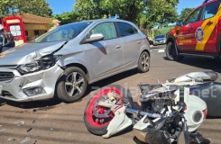 A motociclista foi arremessada por cima do veículo, parando no asfalto, a cerca de dois metros do local do acidente