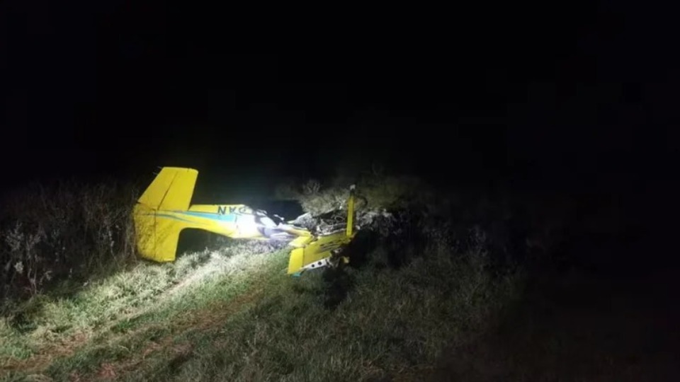 Avião de pequeno porte caiu na área rural de Aquidauana, no Pantanal do Mato Grosso do Sul, na noite de terça-feira (23).