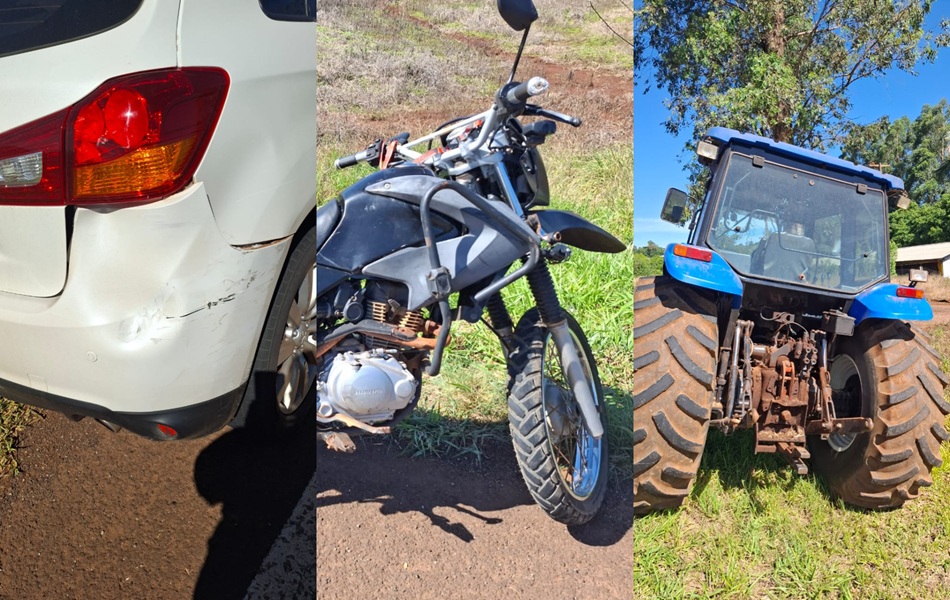 Durante a manobra, o motorista se deparou com um carro vindo no sentido contrário e tentou retornar à sua pista. Nesse momento, a motocicleta colidiu na traseira do Mitsubishi e, em seguida, bateu no trator que trafegava à frente.