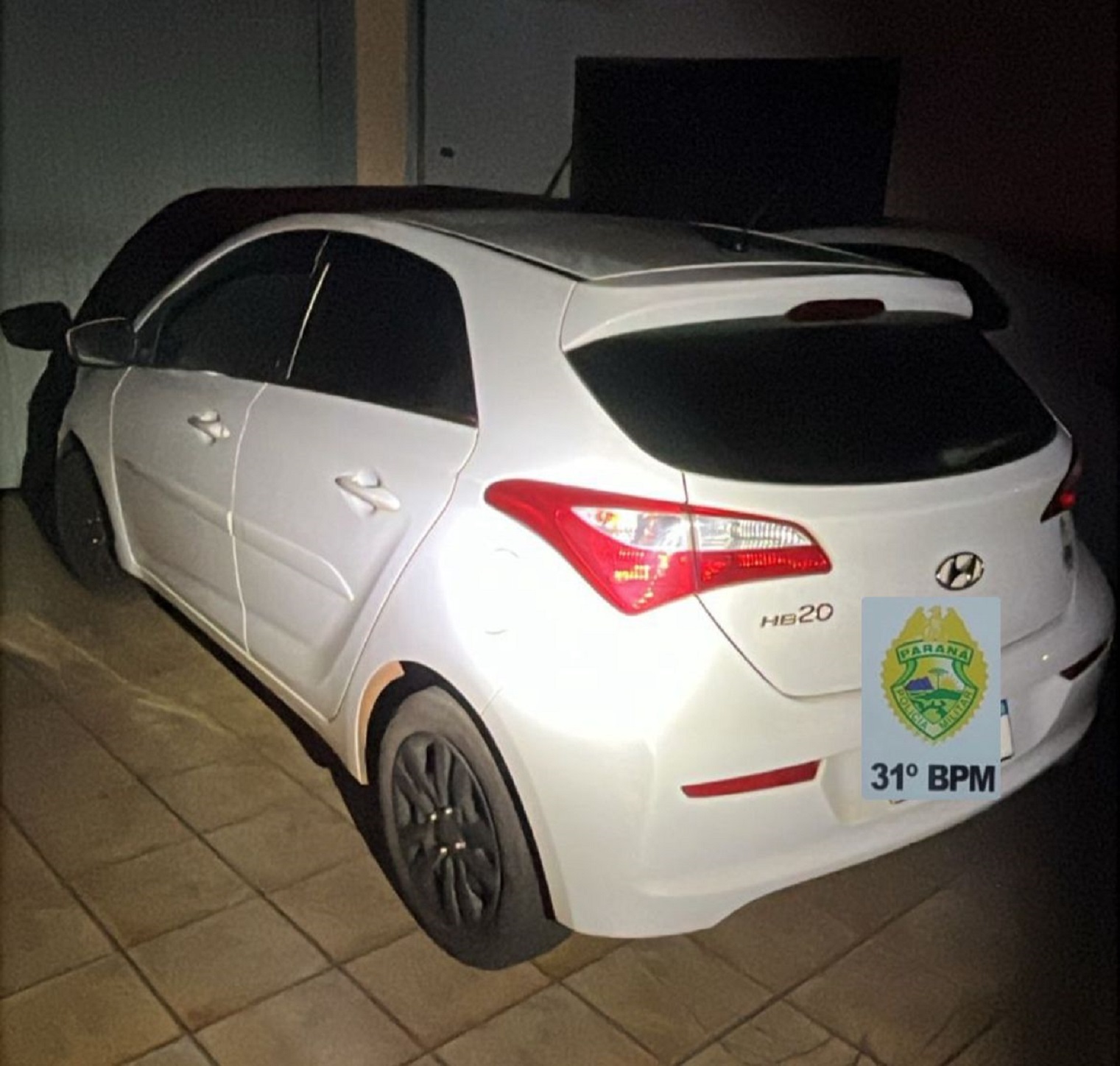 Durante o patrulhamento, os policiais avistaram um automóvel branco circulando entre as cidades de Assis Chateaubriand e Brasilândia do Sul.