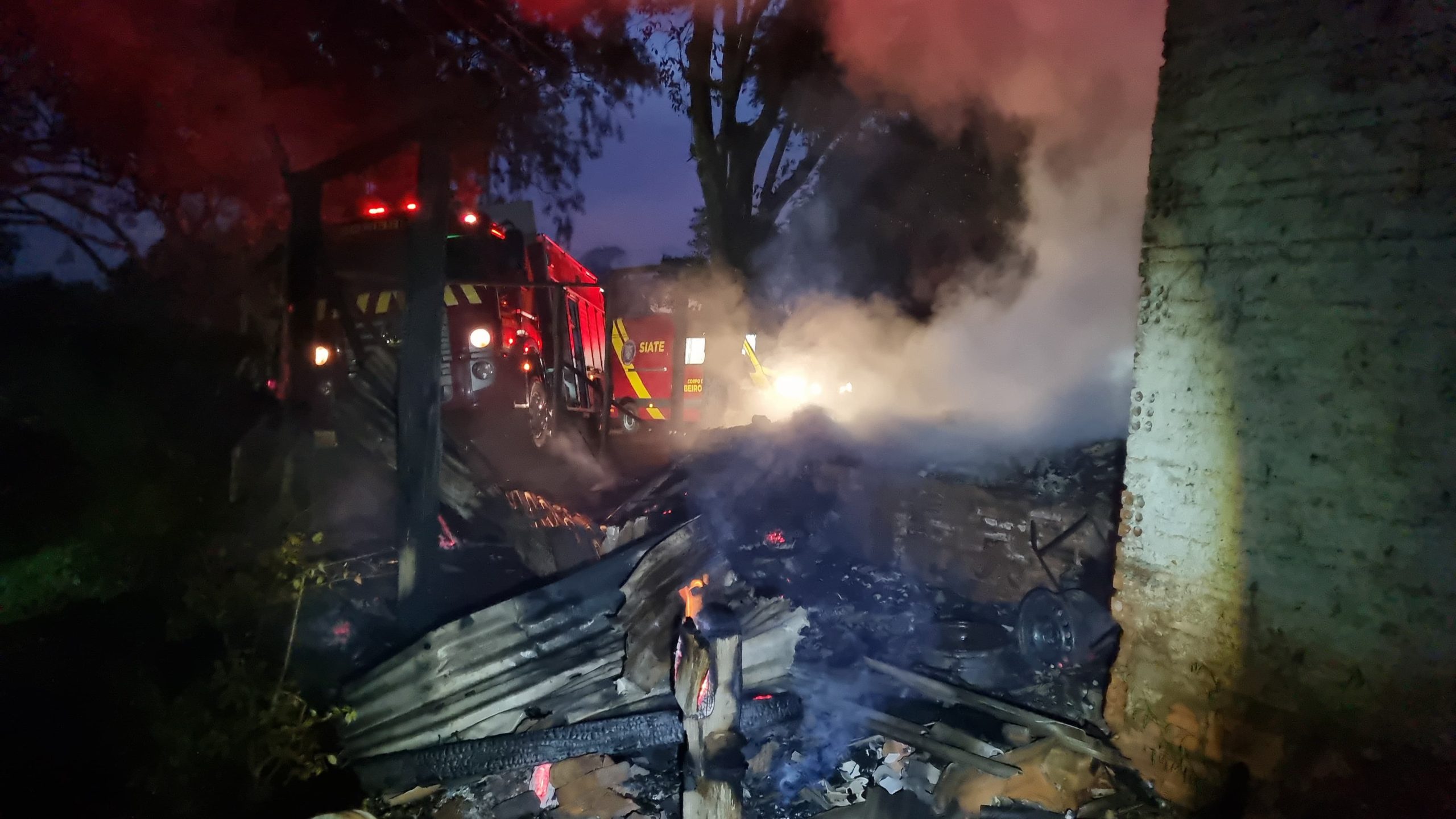 O incêndio mobilizou uma grande operação do Corpo de Bombeiros, que enviou dois caminhões ABTR, além de uma ambulância e médico de apoio. Apesar da chegada rápida das equipes, a casa — construída parcialmente em alvenaria e madeira — já estava tomada pelo fogo.