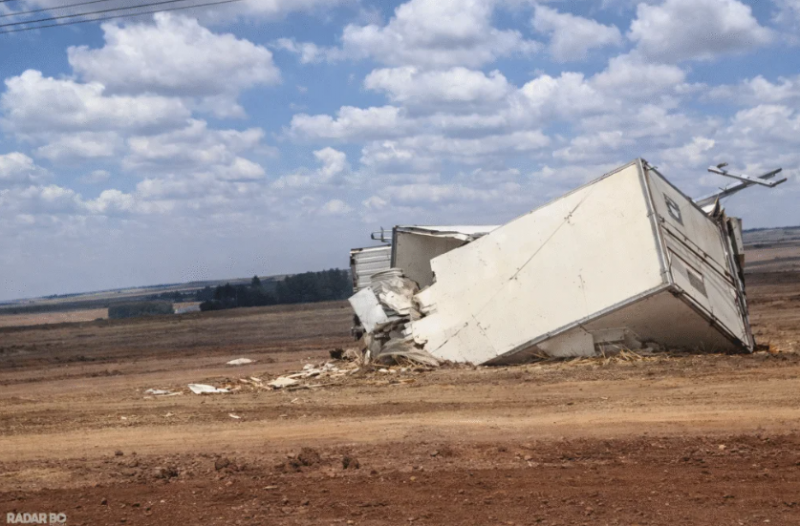 Com a força do impacto, o caminhão branco saiu da pista, adentrou uma área de plantação e acabou colidindo contra um poste . O outro caminhão envolvido no acidente também saiu da rodovia e parou em meio à lavoura.