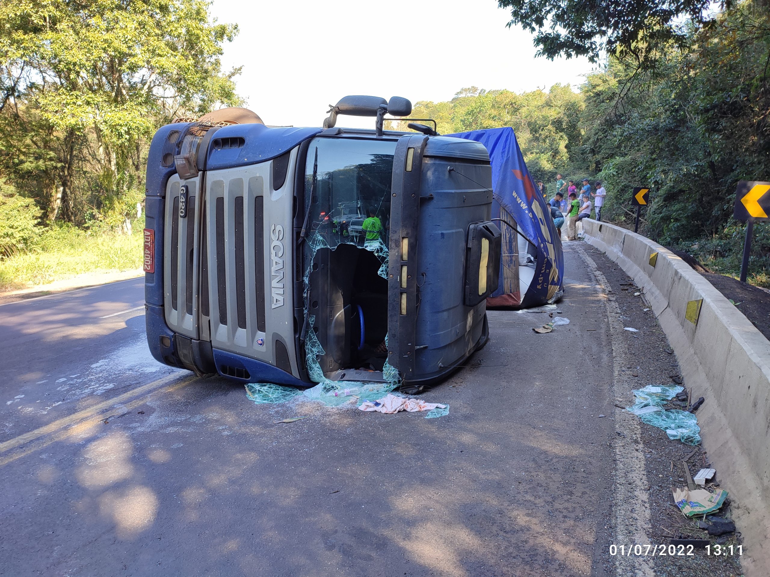 O motorista, de aproximadamente 74 anos que havia carregado farinha de trigo em Laranjeiras do Sul e seguia para Medianeira, ficou gravemente ferido.