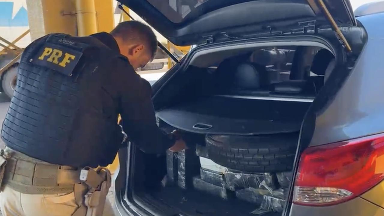 No interior do carro, os policiais encontraram diversos fardos de maconha prensada, que ocupavam grande parte do espaço interno e do porta-malas. A droga apreendida totalizou 466,2 quilos.