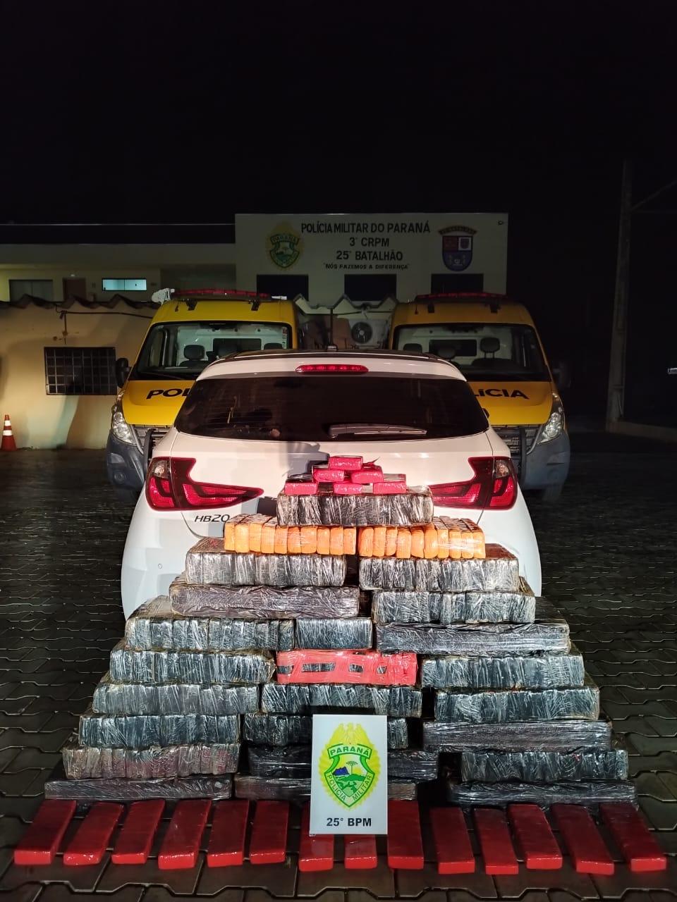 Uma operação realizada pela Polícia Militar do Paraná, em ação conjunta entre o 25º Batalhão de Polícia Militar (BPM) e o Batalhão de Polícia Rodoviária (BPRv), resultou na apreensão de 230 quilos de maconha e na detenção de dois homens, em Umuarama.