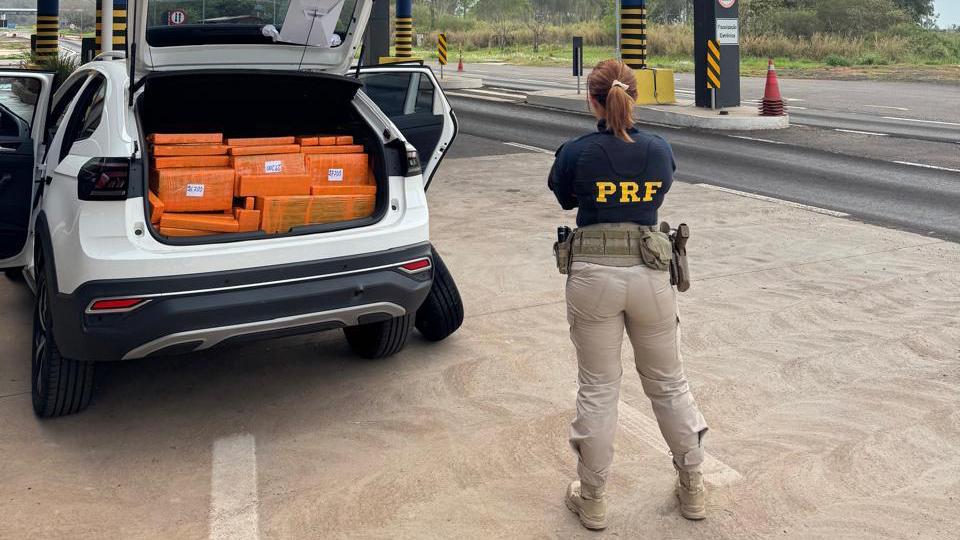 O automóvel era ocupado por dois jovens, de 21 e 16 anos. Durante a fiscalização, os policiais localizaram diversos tabletes de maconha escondidos no porta-malas.