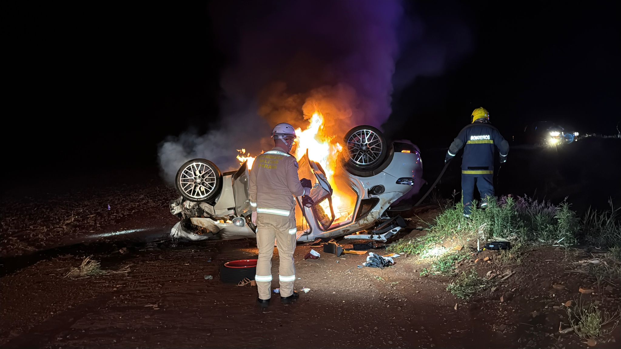 Equipes do Corpo de Bombeiros combateram o incêndio, mas o Porsche ficou completamente destruído pelas chamas. A Polícia Rodoviária Federal (PRF) foi acionada e deve apurar as causas do acidente.