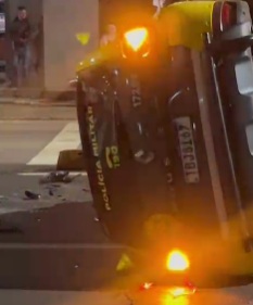 Segundo informações, a viatura se deslocava para atender uma ocorrência, utilizando sinais luminosos e sirenes, quando cruzou o sinal vermelho e acabou sendo atingida pelo Renegade.
