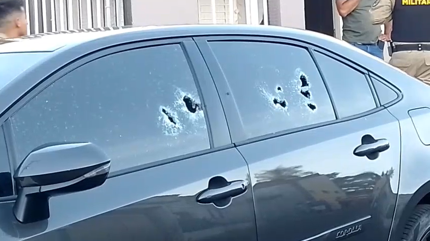 O veículo estava estacionado em frente à residência da vítima quando outro automóvel se aproximou e os ocupantes efetuaram diversos disparos. A criança conseguiu abrir a porta e correr para dentro da casa, sem ser atingida.