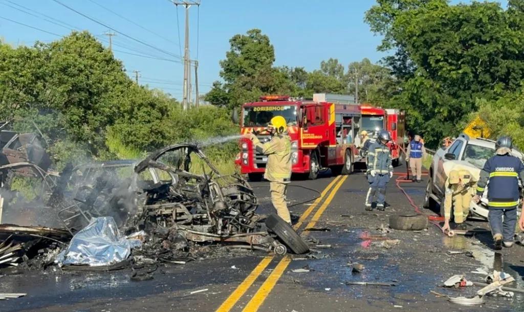 O motorista conseguiu sair cortando o cinto de segurança com um canivete. O condutor do automóvel que também pegou fogo e a condutora da camionete sofreram ferimentos leves.