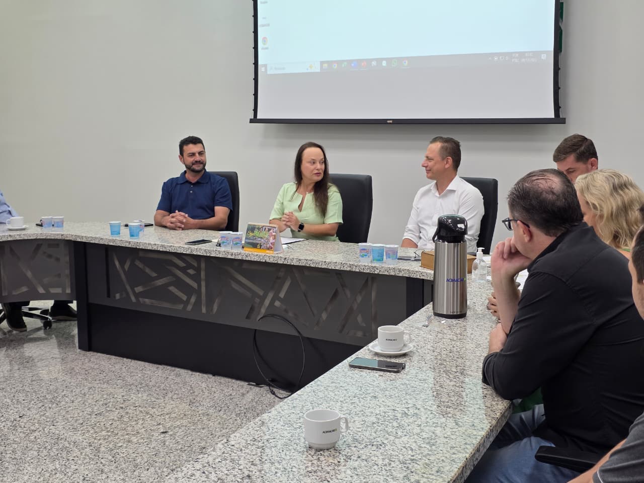 O prefeito Adriano Backes, acompanhado do vice-prefeito Vanderlei Sauer e do secretário de Planejamento, Anderson Bento Maria, participou na manhã desta terça-feira (09) da reunião de diretoria da Associação Comercial e Empresarial de Marechal Cândido Rondon (Acimacar). O encontro, realizado na sede da entidade, contou com a presença da presidente Geovana Aparecida da Silva Krause, além de demais diretores e empresários do município.