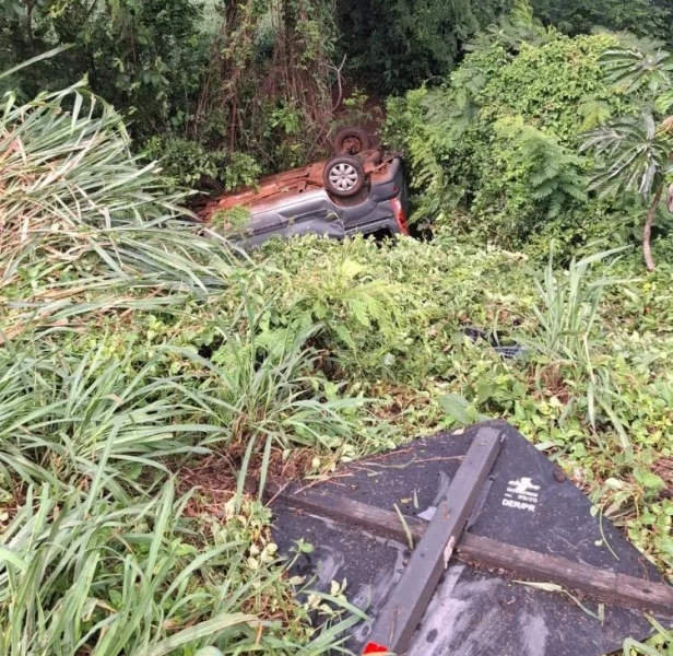 Foi o capotamento de um Renault/Kangoo, placas de Marechal Cândido Rondon/PR, conduzido por uma mulher de 35 anos..