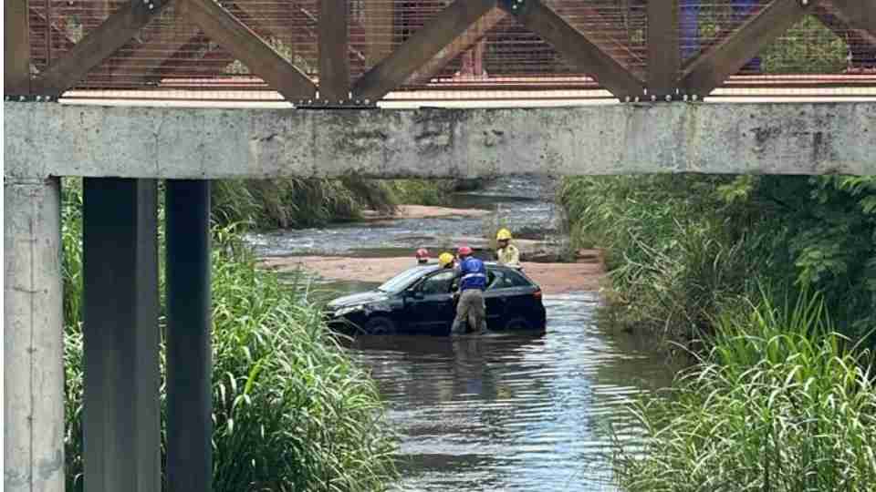 Um Volkswagen Gol caiu dentro do Córrego Bezerra no Ecopark Oeste em Cascavel, no Oeste do Paraná, no início da tarde de terça-feira (20). A situação aconteceu na rua Paraná.