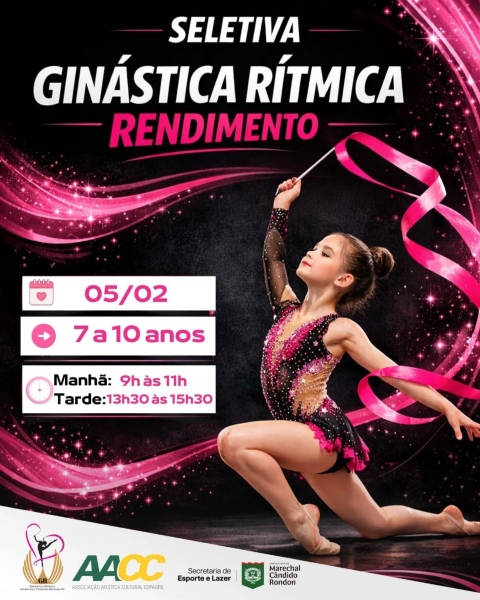 Já para a seletiva de desempenho, que acontecerá no dia 05/02, na parte da manhã, das 9h às 11h, e no período vespertino, das 13h30 às 15h30, as atletas serão avaliadas pelas professoras do projeto, onde os principais critérios a serem julgados são as principais características físicas que uma atleta de ginástica rítmica precisa apresentar, como: flexibilidade, coordenação motora, entre outros requisitos.