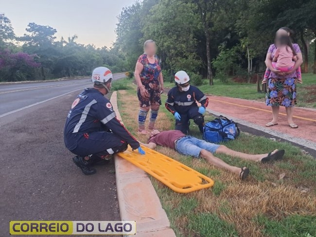 Uma equipe do SAMU foi acionada e realizou os primeiros atendimentos no local. Após a avaliação inicial, o homem foi encaminhado ao Hospital Beneficente Moacir Micheletto para cuidados médicos.