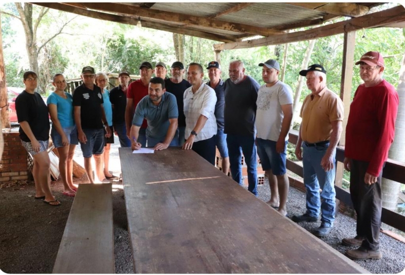 O prefeito de Marechal Cândido Rondon, Adriano Backes, e o vice-prefeito Vanderlei Sauer assinaram, na manhã desta quinta-feira (5), a ordem de serviço para a execução de pavimentação asfáltica em TST (Tratamento Superficial Triplo) na Linha Sanga do Mico, localizada no distrito de Bom Jardim.