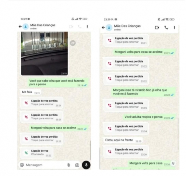 Nas conversas, Leandro aparece tentando acalmá-la e pedindo que ela voltasse para casa e pensasse nas filhas.