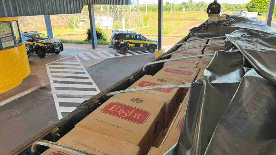 No entanto, ao realizar a vistoria no compartimento de carga, os policiais encontraram milhares de pacotes de cigarros de origem paraguaia.