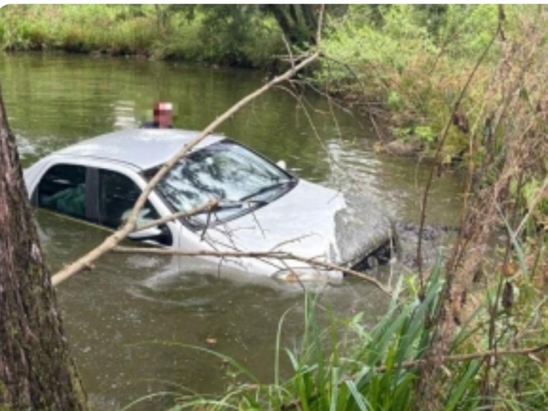 Carro carregado com agrotóxicos cai dentro de açude em fuga da PRF em Mercedes
