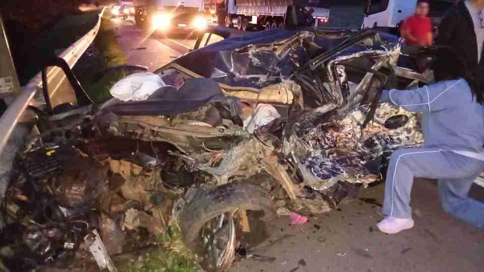 No carro estavam um homem de 40 anos, uma mulher de 24 e uma criança de 4 anos, todos morreram no local. A criança era filho do casal.