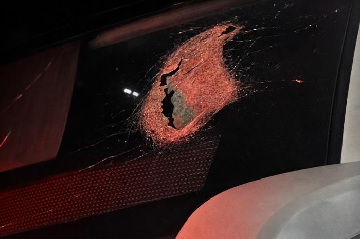Com o impacto, a peça foi projetada contra a parte superior do ônibus e acabou invadindo o compartimento de passageiros.