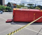 Ambulância dos Bombeiros tomba após colisão com carro em Curitiba