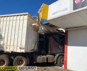 Carreta desgovernada invade loja de material de construção em Santa Helena